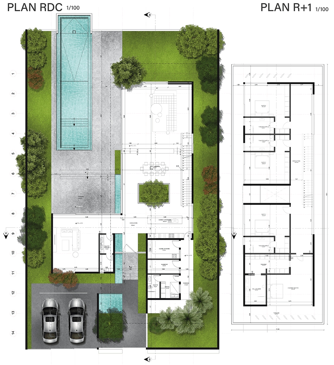 Les villas NERINA se démarquent par deux séjours cathédraux au rez-de-chaussée. Ces espaces spectaculaires, baignés de lumière naturelle, offrent une atmosphère grandiose, idéale pour les rassemblements sociaux ou simplement pour profiter de moments paisibles.